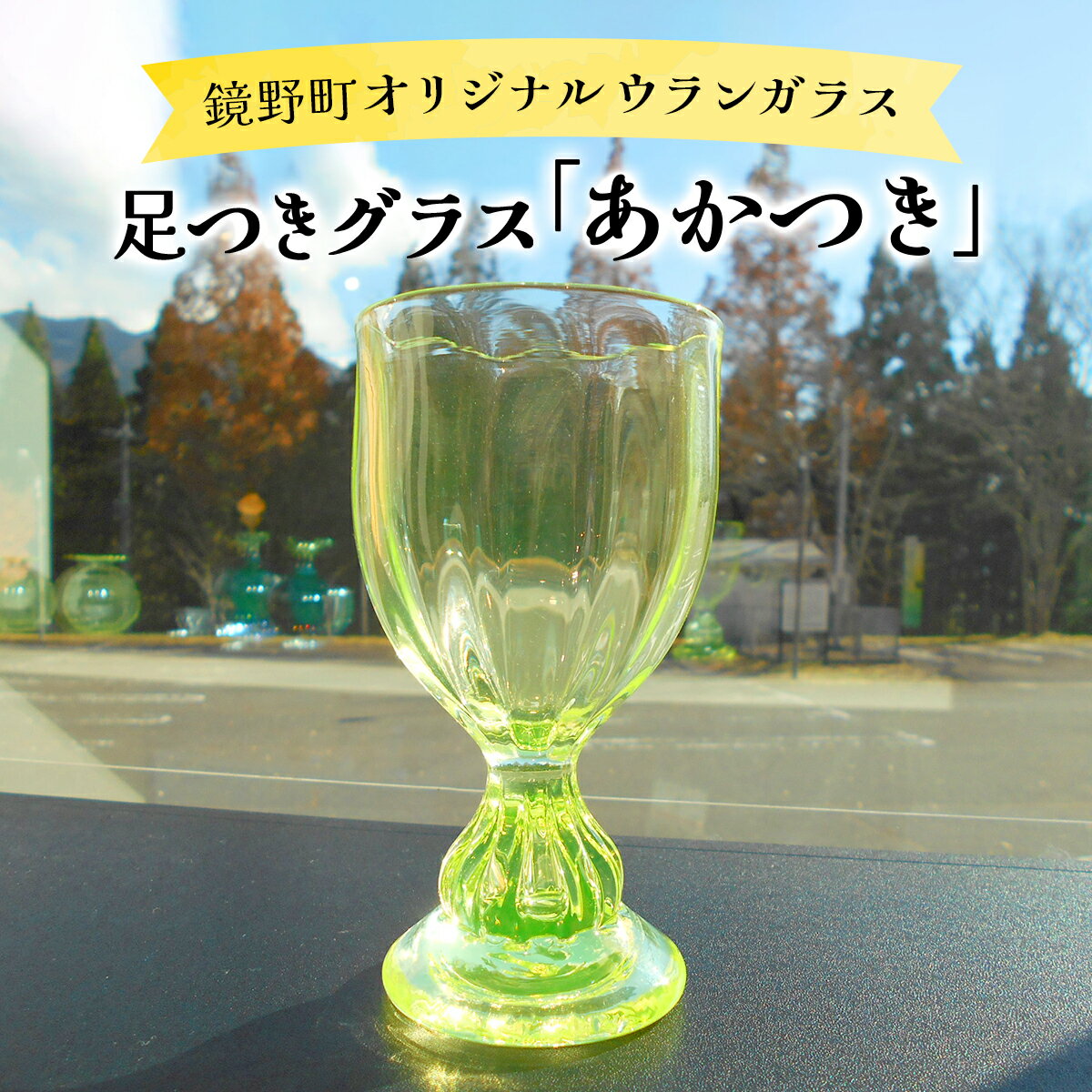 名称 足つきグラス「あかつき」 商品説明 ウランガラスを使用した足つきグラスです。ビジュアルも美しく華やかです。 ワインやお気に入りの飲み物を注いで、至福のひとときをお楽しみください。 ウランガラスは、ガラス原料に着色剤としてごく微量のウランを混ぜて作られるガラスで、美しい黄緑色が特徴です。ブラックライトなどの強い紫外線を当てると、ウラン原子がエネルギーを吸収し、人間の目に最も敏感で美しく映る緑色の蛍光を発します。 紫外線を含む太陽光に当たると、さらに色が濃く変化するため、光の下で異なる表情を楽しめます。 装飾品やアンティークコレクションとしても人気が高く、独特な発光美が魅力のひとつです。 「ウラン」と聞くと怖い印象を受けるかもしれませんが、ウランガラスに使用されるのはごく微量であり人体にはまったく影響はありません。 内容量 口径7.0cm 高さ13.0cm ※サイズはおおよその値となります。手作りのため誤差があります。 産地 岡山県 提供企業 妖精の森ガラス美術館 備考 【注意事項】 ご入金確認後、準備ができ次第発送。 手作りのため1つ1つ異なります。 ご寄附いただいてから発送までにお時間をいただく場合もあります。 ※画像はイメージです。 ・ふるさと納税よくある質問はこちら ・寄付申込みのキャンセル、返礼品の変更・返品はできません。あらかじめご了承ください。「ふるさと納税」寄付金は、下記の事業を推進する資金として活用してまいります。 寄付を希望される皆さまの想いでお選びください。 (1) 安心・安全の町づくり事業 (2) 子育て支援・教育環境づくり事業 (3) 高齢者福祉事業 (4) 産業観光振興事業 (5) 協働のまちづくり事業 (6) 町政一般に対する寄付 特段のご希望がなければ、町政全般に活用いたします。 入金確認後、注文内容確認画面の【注文者情報】に記載の住所にお送りいたします。 発送の時期は、寄付確認後2ヵ月以内を目途に、お礼の特産品とは別にお送りいたします。