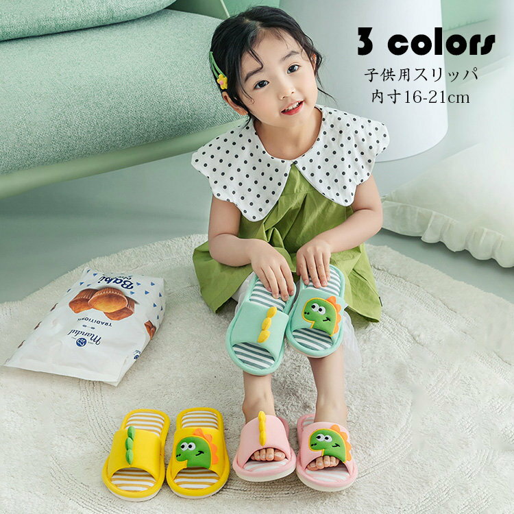 スリッパ 子供用 ルームシューズ キッズ 女の子 男の子 恐竜柄 刺繍 室内用リネンスリッパ 部屋履き 室内履き 滑り止め 通気性 汗を吸い取る 疲れない 蒸れない 散歩 洗える お手入れ簡単 通年適用 内寸16-21cm 選べる3色