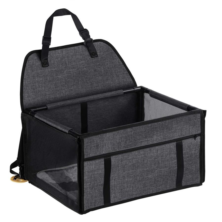 犬 車 ペット用 ドライブボックス 車用ペットシート 座席シート ペットバック 飛び出し防止 車酔い防止 安全ベルト付き 持ち運び便利 防水生地 水洗い可能 取り外し可能 ふわふわ 座り心地よい 抗菌 防臭 お出かけ (ダークグレー)