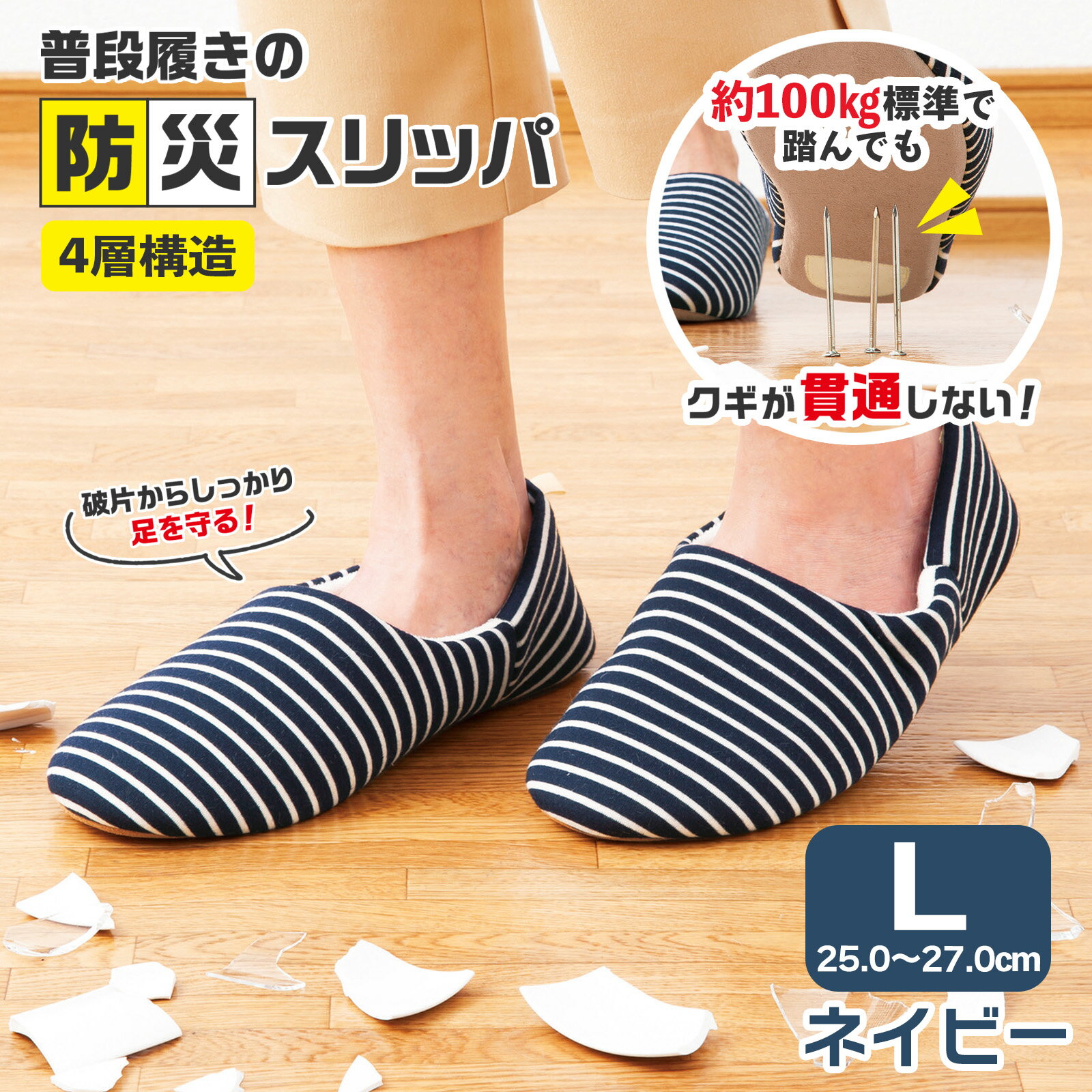 【送料無料】普段履きの防災スリッパ L ネイビー