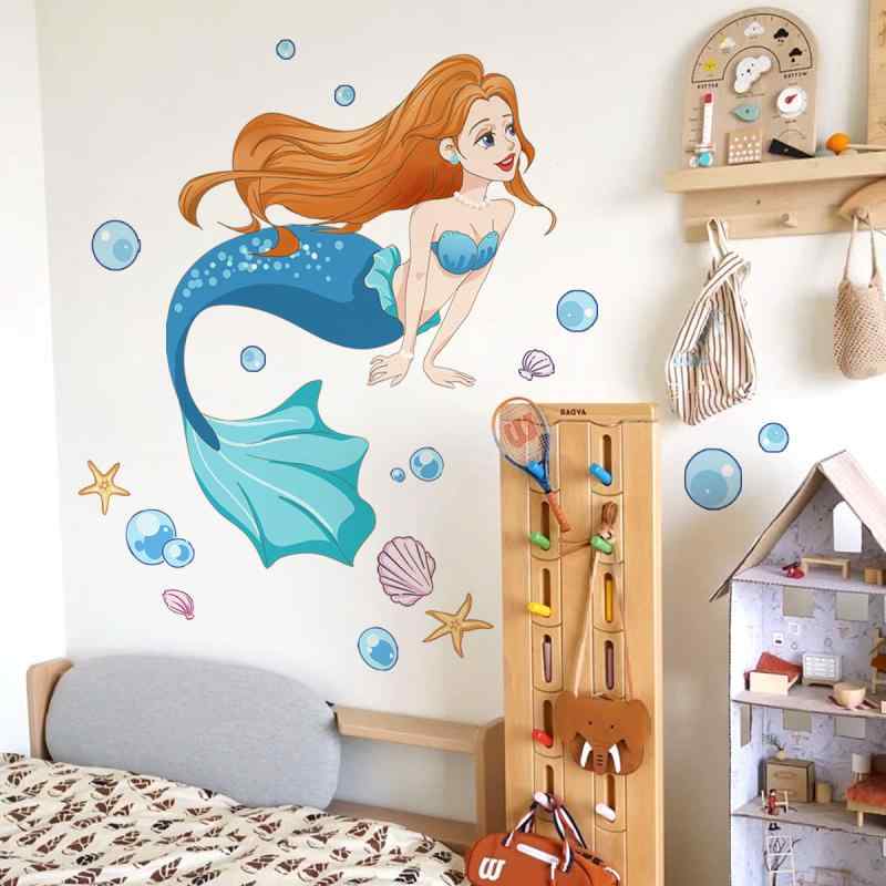 ウォールステッカー 子供部屋 人魚 貝殻 泡 海の生き物 マリン キャラクター アニメ おしゃれ かわいい デコレーション 貼るだけ インテリア 模様替え PVC素材 リビング 寝室 玄関 バスルーム