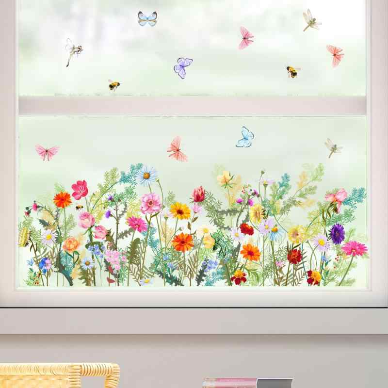 ウォールステッカー 貼るだけ 剥がせる シール式 PVC製 グリーン 植物 花 チョウ 蝶 枝 小鳥 窓用 ガラス ショーウィンドウ 部屋 飾り付け おしゃれ 模様替え リビング 寝室 書斎 ダイニング キッチン 浴室 玄関 ベランダ 店舗用
