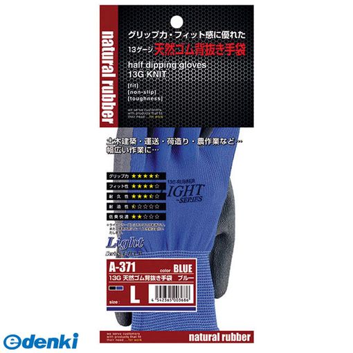 翌日出荷 直送 代引不可・他メーカー同梱不可 おたふく手袋 4542365003686 13G天然ゴム背抜き手袋 ブルー L ライトシリーズゴム背抜き手袋