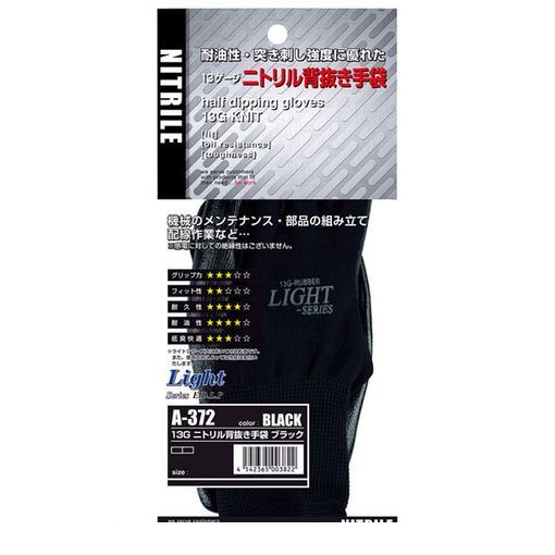 翌日出荷 直送 代引不可・他メーカー同梱不可 おたふく手袋 4542365003105 A−386 13Gニトリル背抜き手袋10P ブラック Light【キャンセル不可】