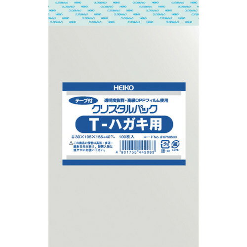 HEIKO ヘイコーポリ OPP袋 テープ付き クリスタルパック T-ハガキ用 100枚入り (1袋) 品番:6758500 T10.5-15.5