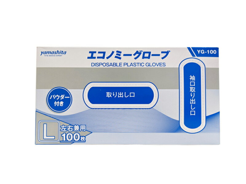 プラスチック手袋 エコノミーグローブ (粉あり) Lサイズ YG-100-3 100枚/箱 プラスチックグローブ【返品不可】