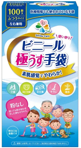 ※ご購入時期によりパッケージデザインが異なる場合がございます。内容に変更はございません。 【材料名】 塩化ビニル樹脂(可塑剤) コーンスターチ(パウダー) 【寸法】 サイズ:L 全長:23cm 手のひらまわり:21cm 中指の長さ:8.5cm ※実寸測定 【使用上の注意】 ・本製品は医療機器ではありません。 ・本製品は未滅菌です。 ・使用するたびに新しいものを取り出してお使いください。 ・体質によってはアレルギー反応などにより、かゆみ・かぶれ・発疹等をおこすことがあります。異常を感じたら使用を中止し、医師に相談してください。 ・高濃度の薬品や溶剤(ガソリン・ベンジン等)に接触した場合、浸透・膨潤・硬化することがありますので注意してください。 ・熱いものに触れないでください。触れるとやけどをすることがあります。 ・爪先、刃物や鋭利な物等で傷をつけないよう注意してください。水もれの原因になります。 ・感電の恐れがありますので、電気作業には使用しないでください。 ・ニスや漆等で塗装した製品、プラスチック製品の中には、本製品で触れた場合、塗装の剥離、汚れの付着・変形・変質なそをおこすものがありますので注意してください。 ・調理には使用しないでください。 ・直射日光や蛍光灯などの光を避けて保管してください。 ・製品の仕様は予告なく変更する場合があります。 【特徴】 ・極薄タイプなので指にフィットし、素手感覚で使えます。 ・左・右兼用タイプの使い捨て手袋です。 【用途】 ・病院や介護現場などの幅広い一般作業に使用できます。