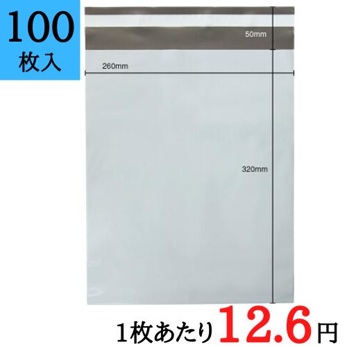 梱包袋 配送袋 宅配袋 100枚セット 小サイズ 横260mm×奥行(マチ)80mm×高さ320mm シール付き 無地 白 梱包用袋 梱包用品 ネットショップ シンプル メルカリ 宅配袋セット 角底袋 宅配便 宅配便用 宅急便用袋 梱包用品 梱包材 本 服 靴 などに [KONPO-FUKURO-SHO_100]