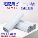 【100枚】宅配ビニール袋 W250×H345+フタ50 梱包 透けない 白 A4サイズ ワンタッチテープ 強力テープ付き 薄手 軽量 防水 通販 ゆうパケット クリックポスト対応 100枚入 宅配袋