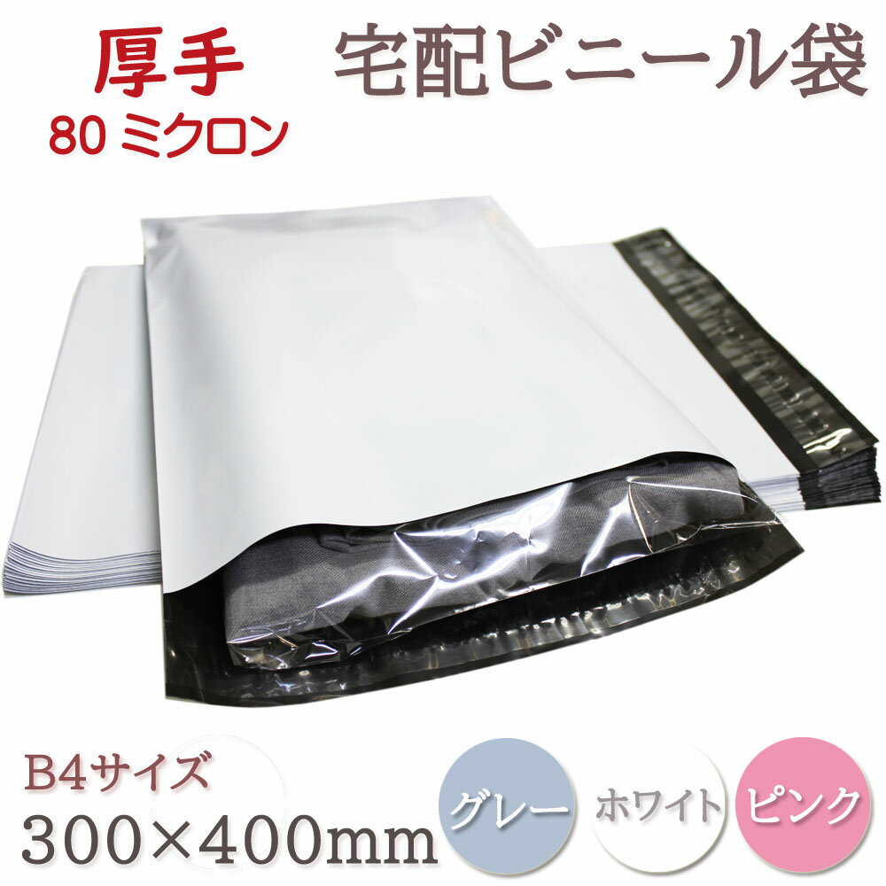 宅配ビニール袋 宅配ポリ袋 宅配袋 100枚 300*400mm B4 A3に近いサイズサイズ 厚手 80ミクロン 透けない 強力テープ付き 封筒 フリマ