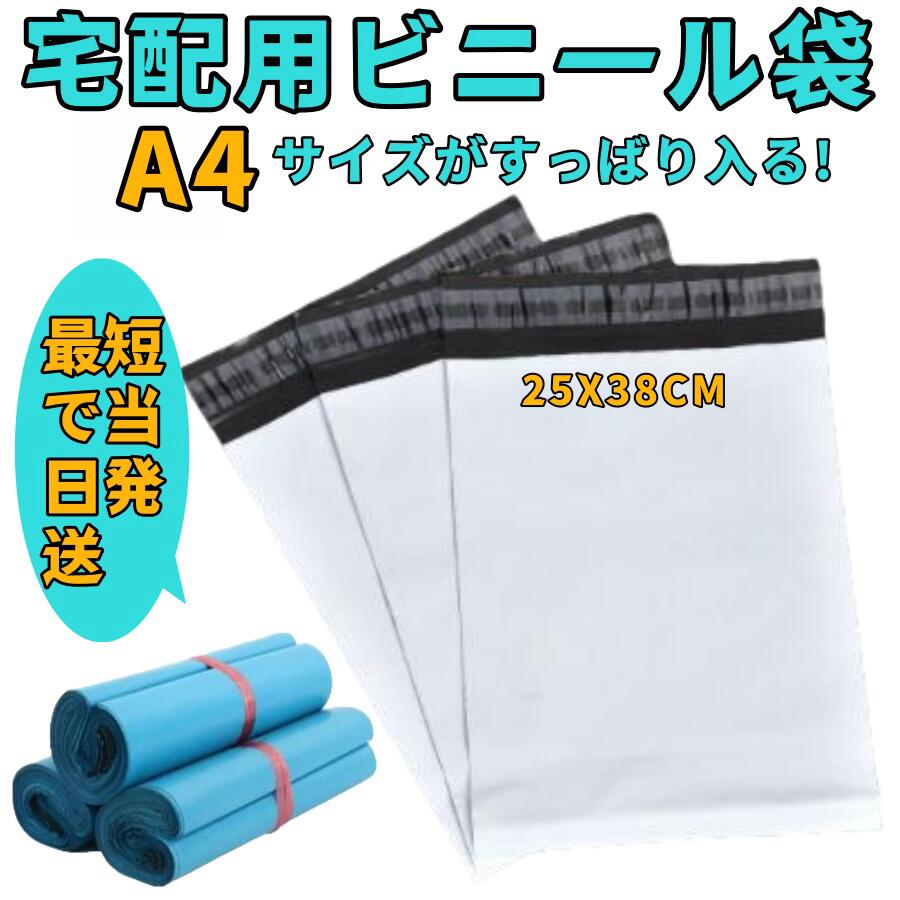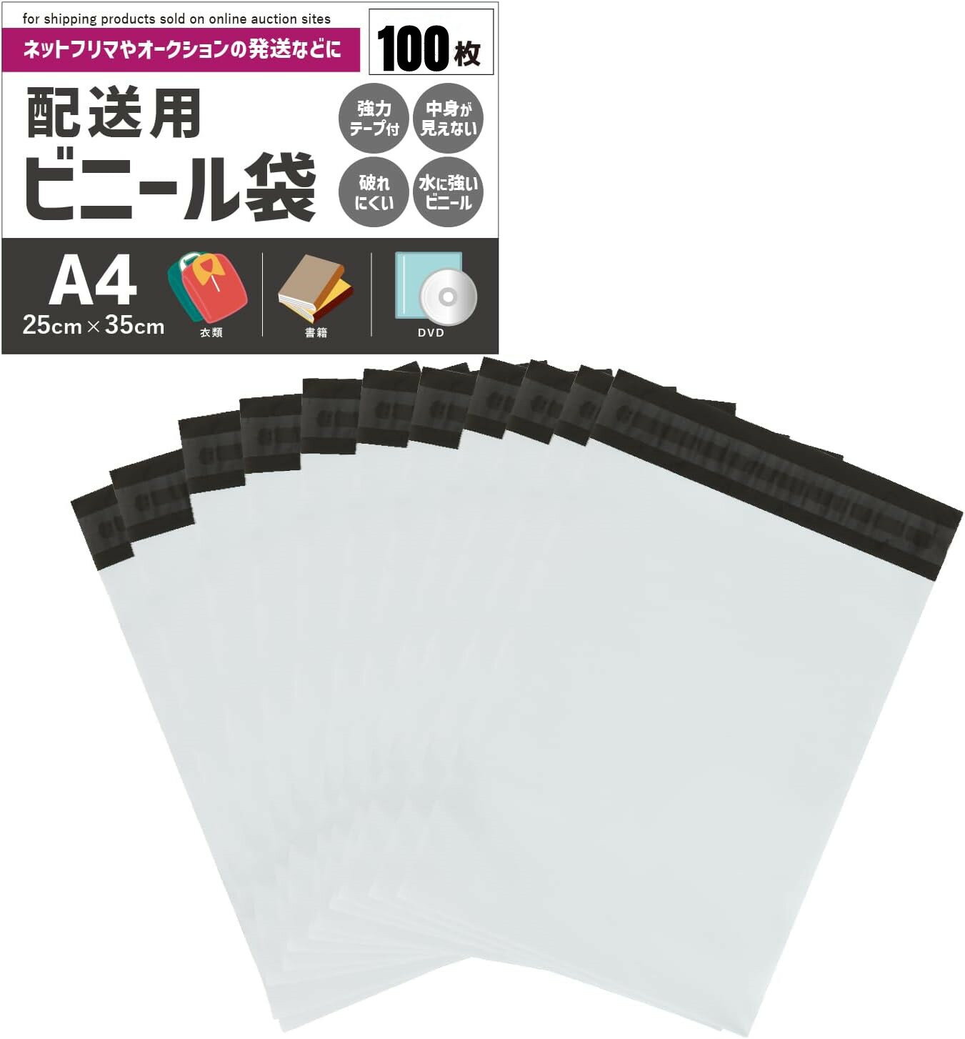 宅配ビニール袋 100枚 A4サイズ 縦35cm×横25cm 透けない テープ付き ホワイト A4サイズがすっぽり 厚み0.06mm ネコポス メール便 梱包袋 梱包材 宅配袋 ビニール 宅配 ポリ袋 クリックポスト メルカリ ラクマ フリマ 撥水 防水
