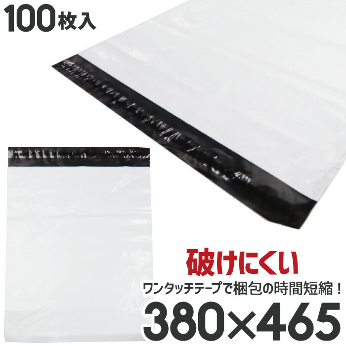 【日祝も発送】【100枚】宅配ビニール袋 白色 巾380×高さ465 厚み80ミクロン 宅配袋 宅配用 梱包材 資材 ポリ袋 透けない 強力テープ
