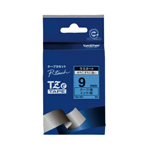ブラザー ピータッチテープ 9mm青/黒 TZE-521