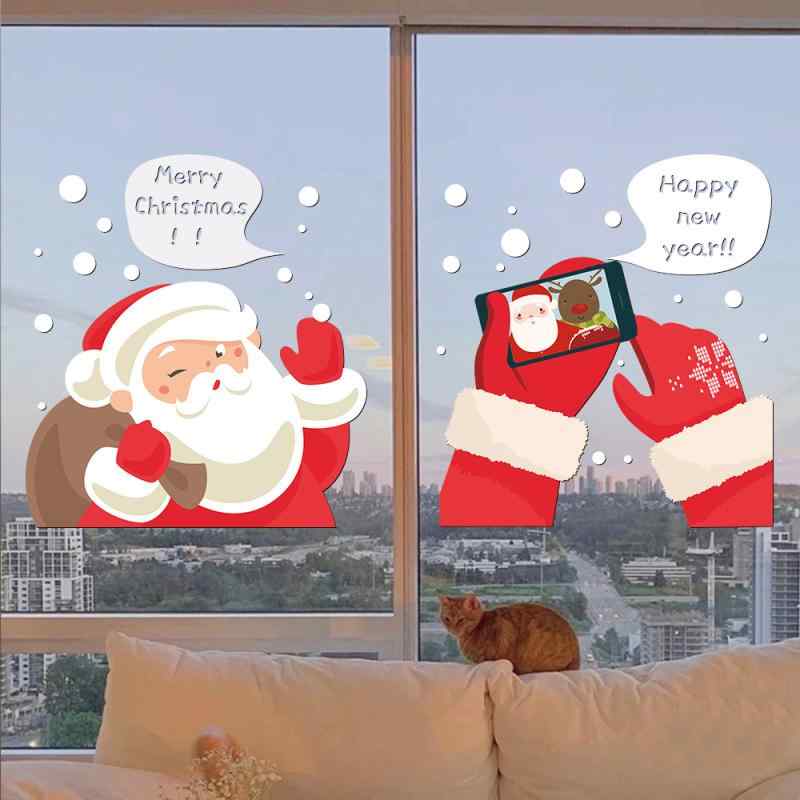 ウィンドウステッカー クリスマス サンタクロース 静電気吸着 両面 透明カラフル 貼って剥がせる 窓 ガラスドア ショーウィンドウ デコレーション 店舗 リビング 装飾 PET素材