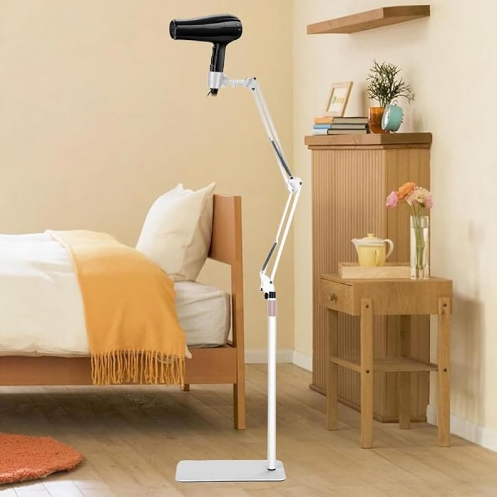ハンズフリーの重底付きドライヤースタンド 長さ調整可、LED 付き、ブラック