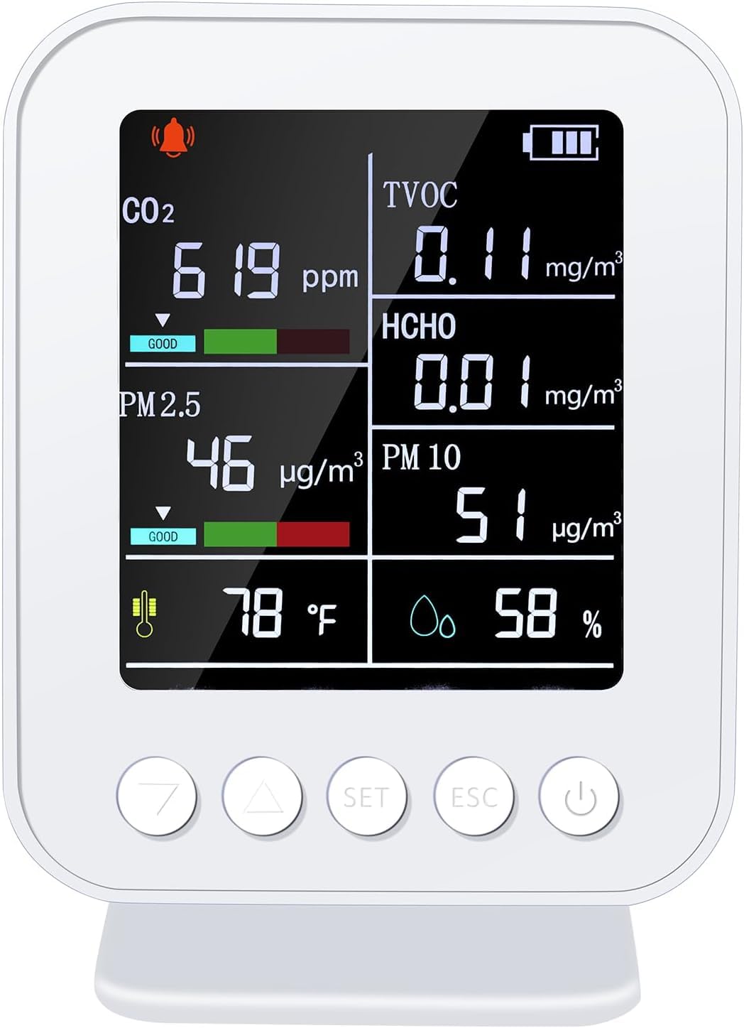 聴覚可能なアラートシステムを備えた高度な7パラメーターエアメーターホームオフィスNDIRセンサーアナライザー用の多機能エアアナライザー