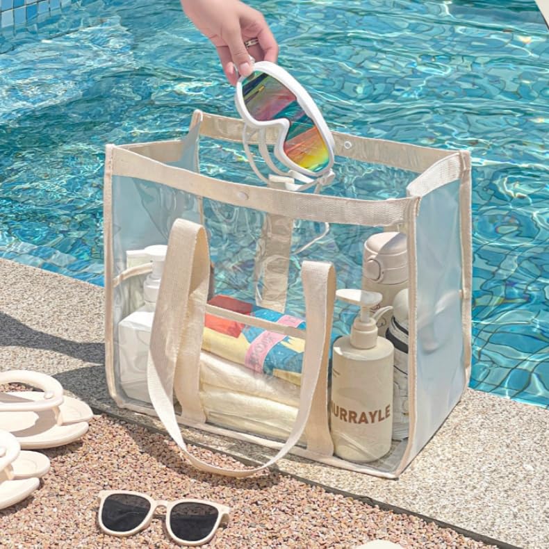 [] プールバッグ ビニールバッグ 透明 大容量 防水 手提げ クリアバッグ ショルダーバッグ pvc 化粧品 コスメ スパバッグ 通勤 旅行 着替え収納 軽量 温泉 海水浴 多用途 持ち運び便利