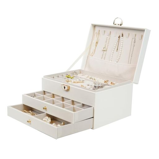 アクセサリーケース3層アクセサリー収納大容量ジュエリーボックスレディースおしゃれ引き出しロック付きPUレザーリング/ネックレス/イヤリング/ピアス/ブレスレット取り外し可能な仕…
