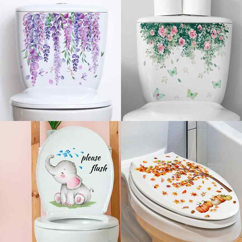 ウォールステッカー 植物 花柄 つる 草 かわいい ゾウ エレファント トイレ 浴室 お風呂 洗面所 便器 壁デコレーション ウォールデコ 剥がせる 簡単貼り付け 防水 PVC製 おしゃれ モダン シンプル 壁紙シール(x2)