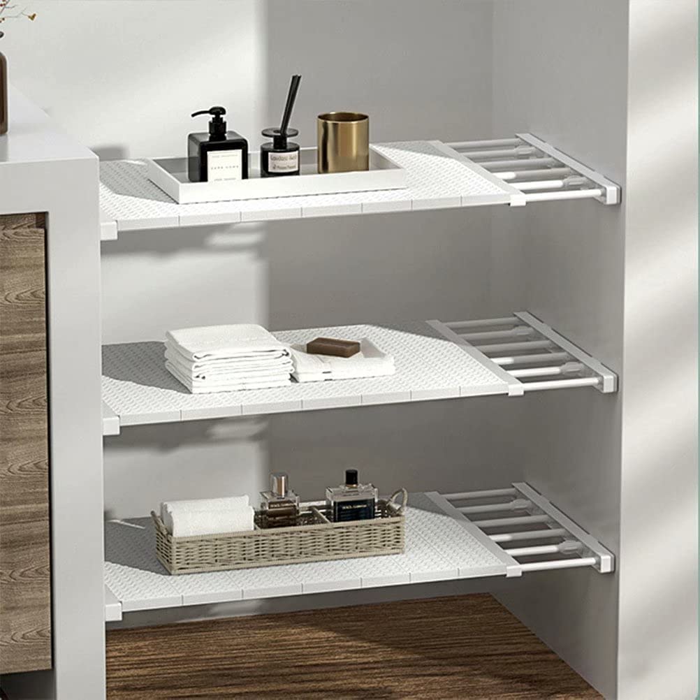 収納ラック 伸縮 つっぱり棚 突っ張り棚 強力伸縮棚 強い負荷 ッシュ棚付 ドリル不要 ワイド幅 ホワイト 強力伸縮タイプ 耐荷重30kg 滑り止め つっぱり棒 強力樹脂メッシュタイプ 簡単取付 多用途 (幅 42cm,長いです 50-80cm)