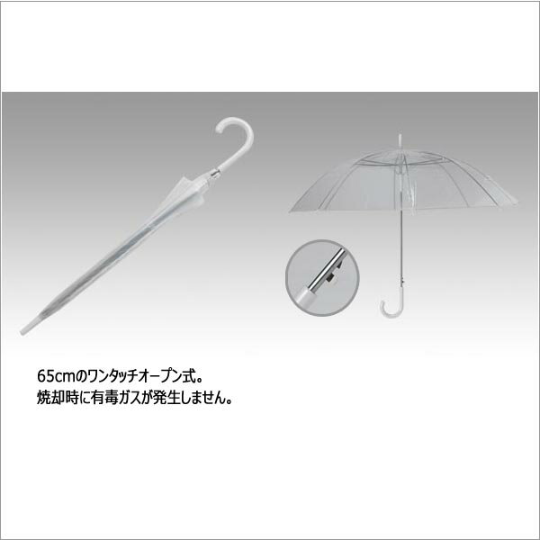POT傘65大判ジャンプ 65cmのワンタッチオープン式。 焼却しても有毒ガスが発生しません。【メール便不可】