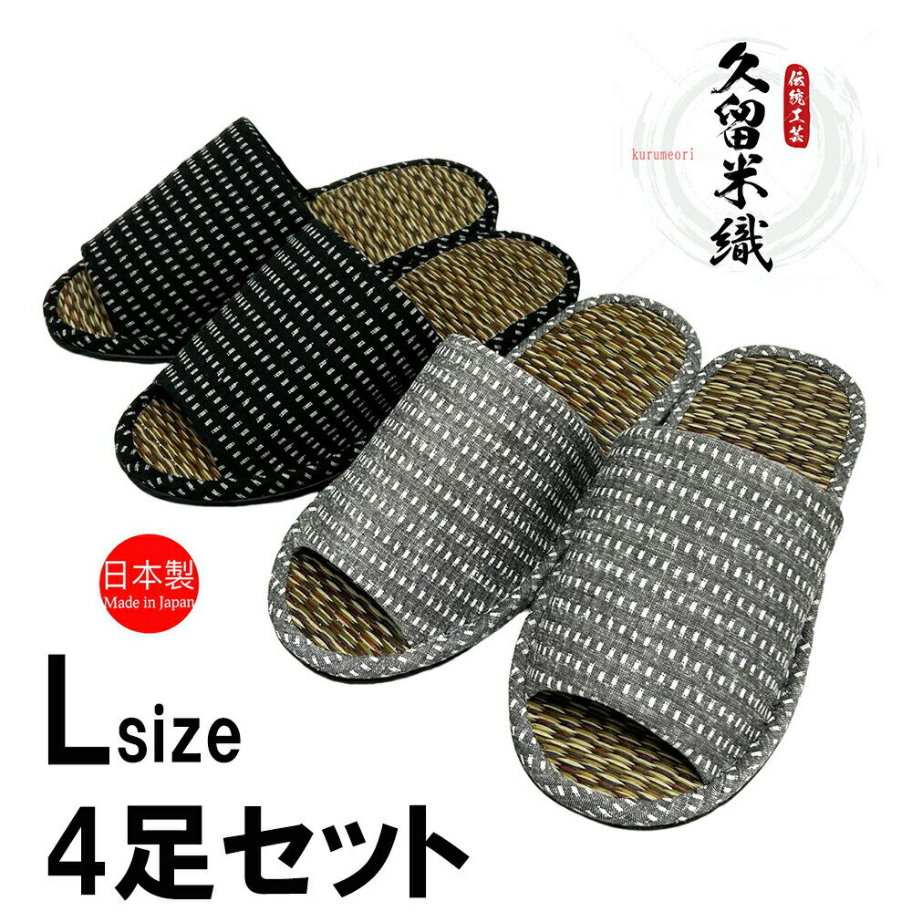 スリッパ 【Lサイズ4足セット】 久留米織 和風 日本製 畳 ゴザ 来客用 ドット メンズ 27cm程度まで ゴザ グレー ブラック 黒 おしゃれ 高級感 い草 自宅用 旅館 ホテル 施設 業務用 会社 事務所 仕事 前あき おしゃれ 蒸れない