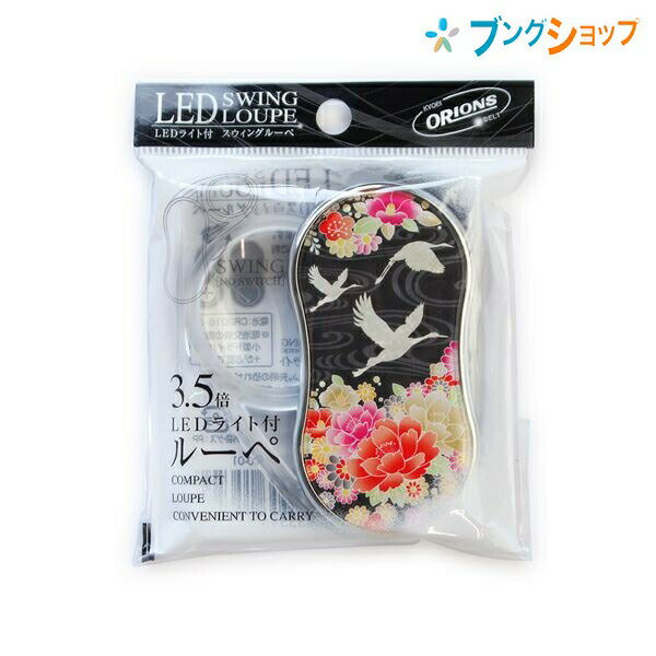 共栄プラスチック ルーペ拡大鏡 LEDスウィングルーペ 鶴柄 SR-1900-07 収納型ルーペ 良く見える 大きく見える サイズアップ 虫めがね 虫眼鏡 レンズ 倍率 LEDライト付コンパクトルーペ 携帯ルーペ