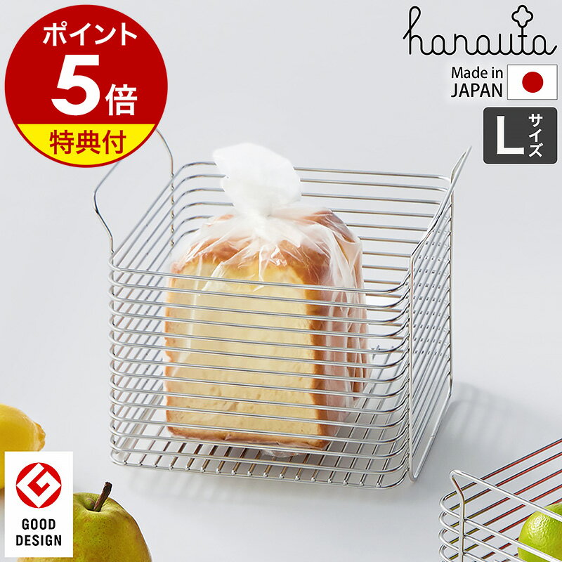 【選べる特典付き】ハナウタ 収納バスケット シルバー ステンレス 18-8 燕三条 おしゃれ かご ワイヤーバスケット ストッカー 調味料入れ 収納ボックス カゴ シンプル キッチン収納 ビーワーススタイル SS-310145[ hanauta キッチンバスケット L SR ]