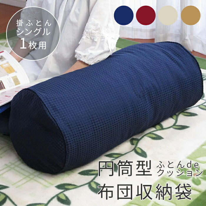 布団 収納袋 ふとんdeクッション 円筒型 羽毛布団 掛け布団 ふとん 収納 シングル クッション 選べる4カラー ブラウン クリーム レッド ネイビー【1点までメール便送料無料】