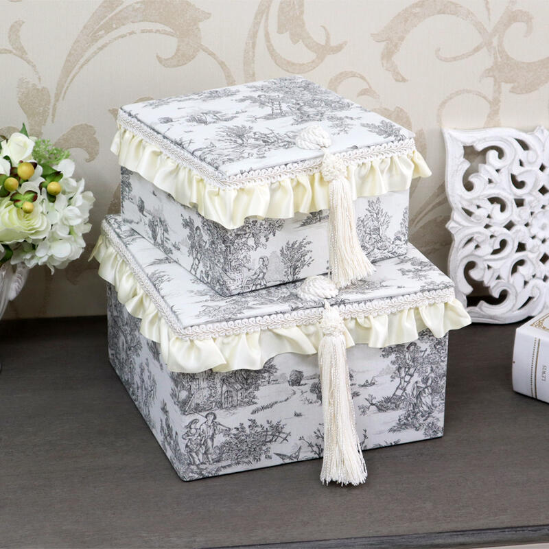 ジェニファーテイラー 収納ボックス2個セット Toile de Jouyトワルドジュイ ボックス リボン ファブリック シャビー シャビーシック アンティーク フランス インテリア ディスプレイ ショップ おしゃれ かわいい 小物入れ 収納 箱 布 北欧 送料無料RE33146BX