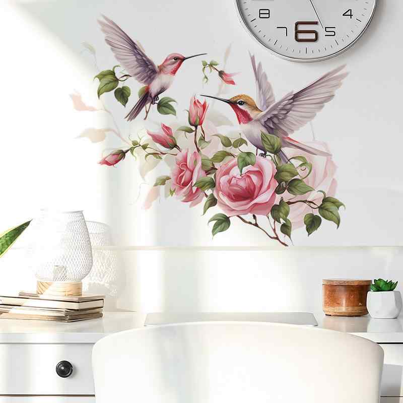ウォールステッカー 貼ってはがせる DIY 美しい ロマンチック ローズ ハチドリ 花柄 植物 寝室 玄関 リビング 子供部屋 模様替え デコレーション モダン シンプル 壁紙シール PVC製