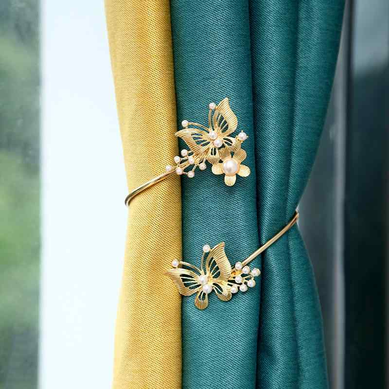 ・素材: 金属・カテゴリ: カーテンタッセル・カラー展開: 大小ちょうちょ型ゴールド、小ちょうちょ型+布花ゴールド・スタイル: シンプル