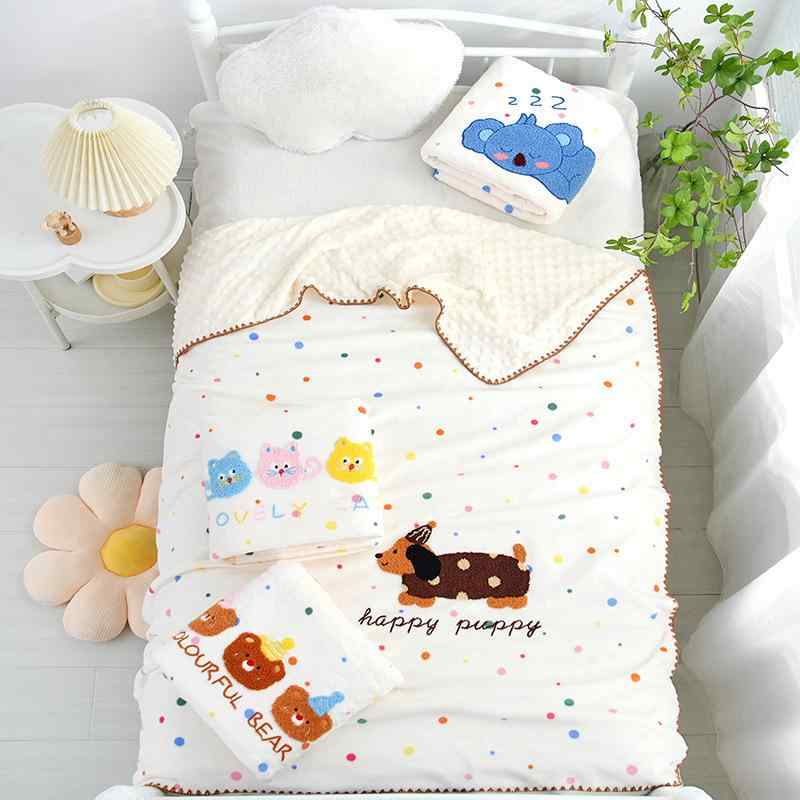 ・カテゴリ: 毛布・スタイル: キャラクター・主な素材: ミルクフリース・重さ: 500g~800g未満・対象: 新生児、乳幼児・デザイン: クマ、コアラ、ネコ、イヌ・サイズ展開: 100×115cm、115×150cm