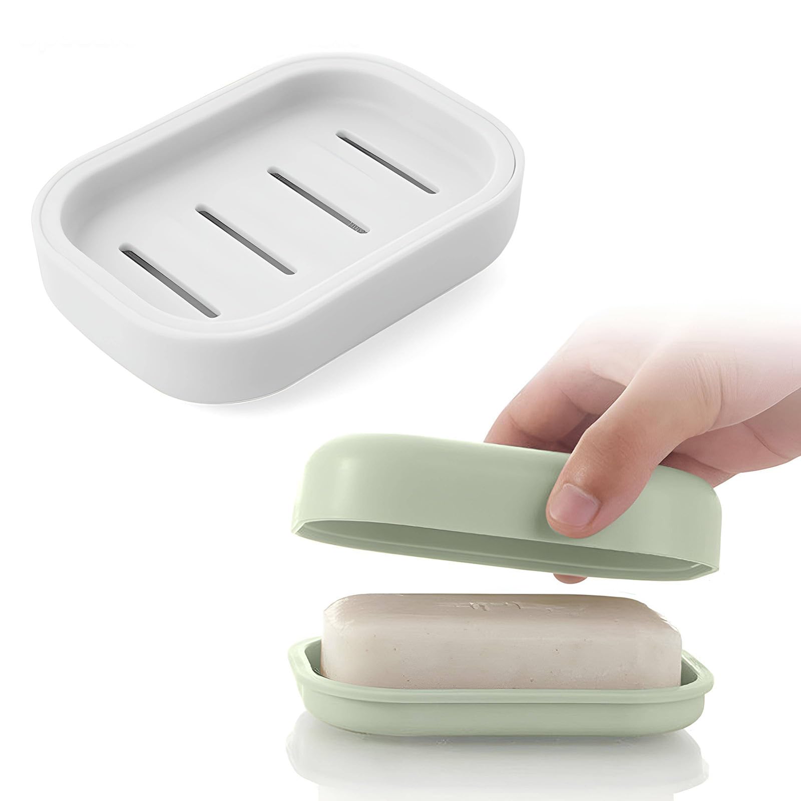 バスルームソープディッシュボックスホルダー、2個 スクエアプラスチック水切りソープホルダー、シャワー用石鹸をドライに保つ 簡単クリーニング、ドライ、どろどろ石鹸を止めます(ホワイト&ライトグリーン), CQUKSY-100