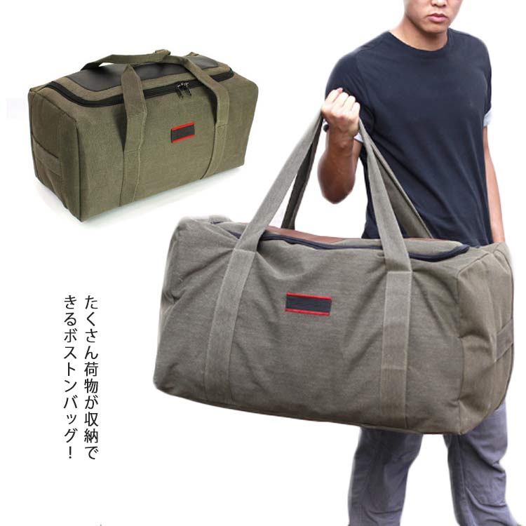 たくさん荷物が収納できるボストンバッグ!ダブルファスナーなので、間口が大きく開いて荷物が入れやすく取り出しやすい。衣類だけでなく、スポーツやアウトドアの道具など多用途にお使いいただけます。スポーツ用具から旅行時の着替えや身の回り品などをしっかり収納。丈夫なカンバス製で、多用途にガンガン使い倒せるボストンです。 サイズ19インチ 22インチサイズについての説明19インチ:54*25*25cm 容量約40L/ 22インチ:62*30*28cm 容量約60L/ ※サイズ表の実寸法は商品によって1-3cm程度の誤差がある場合がございます。素材帆布色カーキ備考注意★洗濯時、色落ちがございます。他の物とのお洗濯もお控えくださいませ。湿気を含んだ状態や水を含んだまま放置しないでください。この製品は洗濯で若干縮むことがあります。洗濯機は使用できません。※ベージュ×モカのみ使用糸の関係上、風合いが少々異なります。 ●綿混合商品は洗濯時に多少縮む事がございます。 ●本製品は生産過程におきまして、生地を織る際の糸の継ぎ目や多少のほつれが生じることがありまが、品質上は問題ありません。また、生地の織りに他繊維が混紡している場合もございます。▼色落ちの恐れがございますので、他のものとは分けて洗濯してください。▼タンブラー乾燥はお避け下さい。▼洗濯の際は他の物と区別して、漂白剤を避け、手洗いを お勧めします。