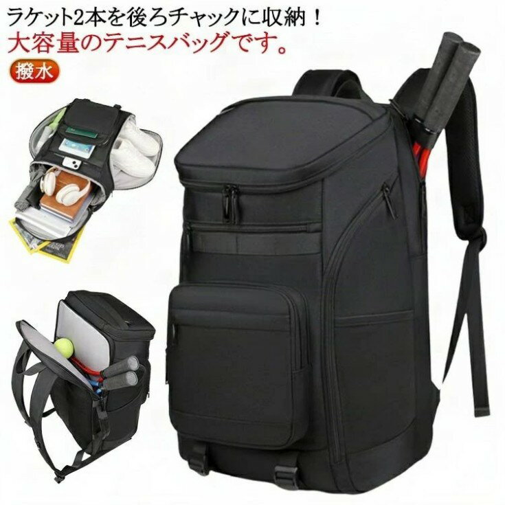 バックパック 撥水 テニスラケットバッグ 大容量 リュック 黒 ラケットバッグ レディーステニスバッグ メンズ ラケット 2本 収納 旅行カバン ジムバッグ テニスバック シューズ入れ バドミントンバッグ 旅行バッグ テニスリュック 通勤 通学