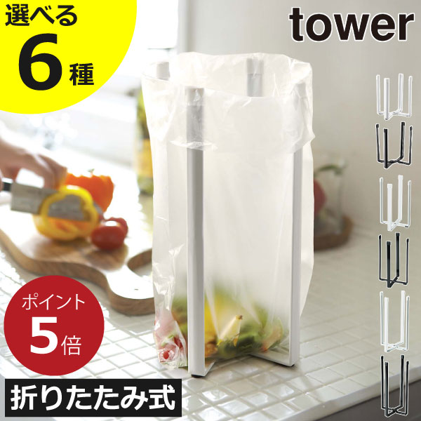 tower タワー レジ袋ハンガー ゴミ袋ホルダー ゴミ受け ごみ 処理 シンク ゴミ 便利グッズ 袋 ゴミ箱 ラック フック 収納 キッチン おしゃれ モダン シンプル 北欧 白 ホワイト 黒 ブラック 山崎実業 07133 07134