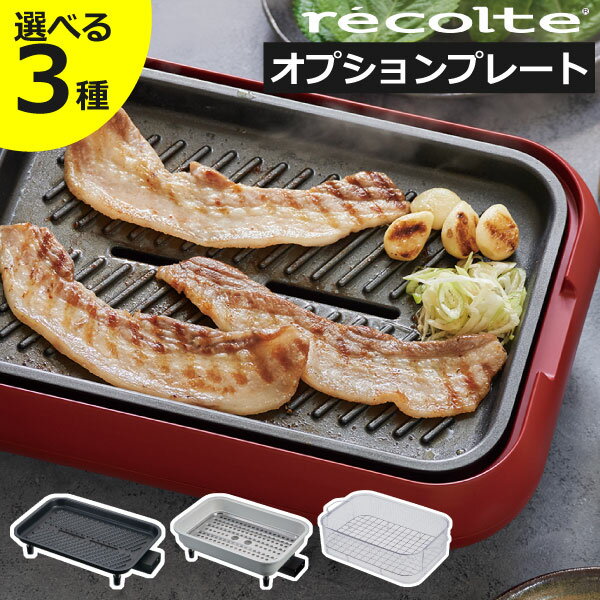 商品詳細 【ホットプレート専用 グリルプレート】 ■サイズ プレート:約幅34cm×奥行き21.5cm×高さ6.5cm 油受け皿:約幅20.5cm×奥行き7.5cm×高さ2.5cm ■素材 プレート:アルミダイキャスト(フッ素樹脂コーティング) 油受け皿:スチール(フッ素樹脂コーティング) ■重量 プレート:約950g 油受け皿:約80g 【ホットプレート専用 セラミックスチーム深鍋】 ■サイズ 深鍋:約幅34.5cm×奥行き22.5cm×高さ10.5cm 蒸しプレート:約幅29.5cm×奥行き19.5cm×高さ0.7cm ■素材 深鍋:アルミダイキャスト(セラミックコーティング) 蒸しプレート:ステンレス ■重量 深鍋:約950g 蒸しプレート:約200g 【ホットプレート専用 クリアスチーマー】 ■サイズ スチーマー:約幅39cm×奥行き23cm×高さ10.5cm 蒸し網:約幅31.5cm×奥行き21.5cm×高さ0.2cm ■素材 スチーマー:トライタン 蒸し網:ステンレス ■重量 深鍋:約950g スチーマー:約310g 蒸し網:約100g スタッフコメント レコルト ホットプレートと組み合わせて使えるオプションアイテムです。既にホットプレートをお持ちの方や、購入を検討されている方にぴったり。1枚プラスするだけでも、レシピの幅がぐっと広がるので新しいお料理も楽しんでいただけます。ヘルシーに焼き上げるグリルプレートや、煮込み料理に便利な深鍋、蒸し料理をたっぷり楽しめるスチーマーなど、ホットプレートを使うのがますます楽しみになるアイテムを取り揃えました。【 recolte ホットプレート オプション レコルト 】 OPTION INTRODUCTION オプション紹介 ※レコルト ホットプレート専用オプションです。 ホットプレートを使った料理がもっと楽しめる3アイテム recolte ホットプレート オプション レコルト ホットプレートと組み合わせて使えるオプションアイテムです。 既にホットプレートをお持ちの方や、購入を検討されている方にぴったり。 1枚プラスするだけでも、レシピの幅がぐっと広がるので新しいお料理も楽しんでいただけます。 ヘルシーに焼き上げるグリルプレートや、煮込み料理に便利な深鍋 蒸し料理をたっぷり楽しめるスチーマーなど、ホットプレートを使うのが ますます楽しみになるアイテムを取り揃えました。
