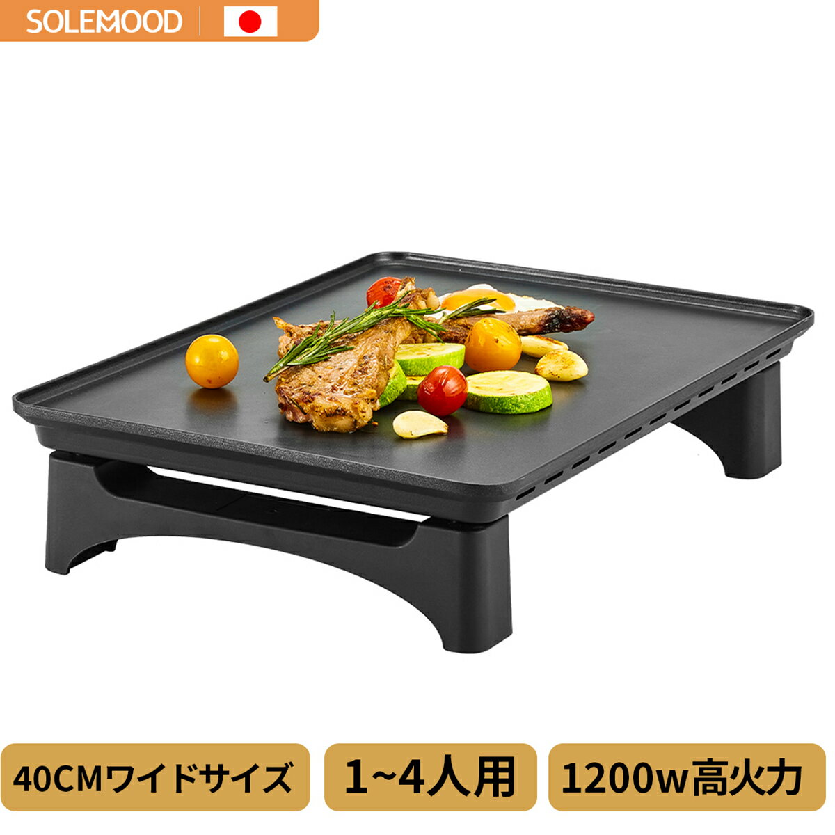 【商品詳細】 品名 :減煙グリルプレート ブランド名:SOLEMOOD 品番 :WL-G1081PS 消費電力:1200W コードの長さ:1.4m プレート素材:アルミニウム合金 安全装置:サーモスタット 電源 :AC100V 50/60Hz サイズ :【本体サイズ】約幅465mm*奥行き270mm*高さ70mm 重さ :約2.9Kg スタンド材質:天然竹製 PSE認証:当商品は、PSEマークの取得に必要な技術基準に適合しております。 届出事業者名:シン三海株式会社 PSマークの種類:PSE 【注意事項】 ※モニターの発色の具合によって実際のものと色が異なる場合がございますので、ご了承ください。 ※北海道・沖縄・離島配送不可です。 ※直送の為、他の商品と同梱不可です。