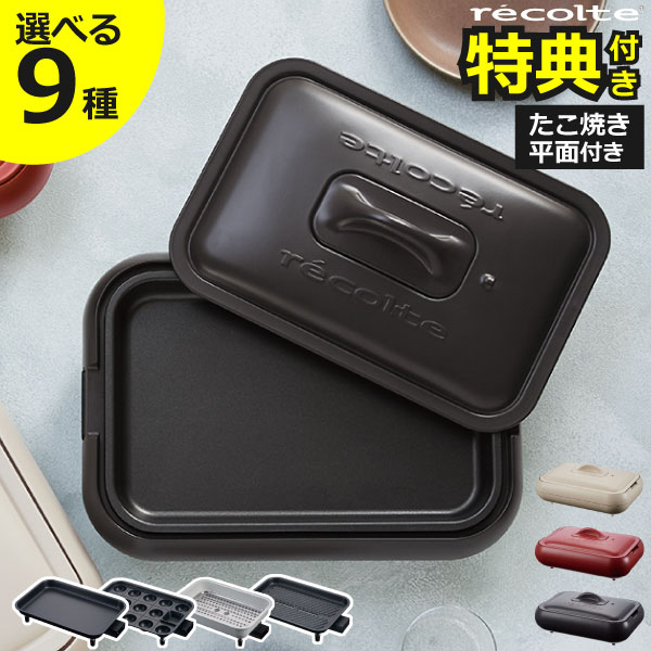 商品詳細 ■商品名 レコルト ホットプレート ■サイズ ホットプレート:約幅44.5cm×奥行き25cm×高さ15.5cm (本体、フタ、平面プレート、コントローラーセット時) 深鍋:約幅34.5cm×奥行き22.5cm×高さ10.5cm 蒸しプレート:約幅29.5cm×奥行き19.5cm×高さ0.7cm グリルプレート:約幅34cm×奥行き21.5cm×高さ6.5cm 油受け皿:約幅20.5cm×奥行き7.5cm×高さ2.5cm ■素材 本体:フェノール樹脂 フタ:スチール・フェノール樹脂 【平面プレート・たこ焼きプレート】 アルミダイキャスト(フッ素樹脂コーティング) 【セラミックスチーム深鍋】 深鍋:アルミダイキャスト(セラミックコーティング) 蒸しプレート:ステンレス 【グリルプレート】 グリルプレート:アルミダイキャスト(フッ素樹脂コーティング) 油受け皿:スチール(フッ素樹脂コーティング) ■重量 約2.6kg (フタ、フラットプレート、コントローラーセット時) ■電源:AC100V 50/60Hz ■定格消費電力:1,300W ■機能:無段階温度調節 ■安全装置 サーモスタット 温度ヒューズ ■付属品 【全セット共通】 平面プレート、たこ焼きプレート、取扱説明書 レシピブック、電源コード スタッフコメント ヒーターをプレートに内蔵した火力が自慢のホットプレートです。食材へダイレクトに熱が伝わる、ガス火に負けない超火力を実現。従来のホットプレートに比べて予熱時間も短く、ムラのない加熱が可能です。ホットプレートでおうちBBQがもっと手軽に愉しめます。本体とプレートは丸洗いでき、お皿感覚で洗っていつでも清潔に使用できます。ヒーターとプレートを一体型にすることで、本体は約2.6kgと軽量。従来のホットプレートでありがちだった大きくて重く、出し入れが面倒という悩みを解決します。シンプルで洗練されたデザインは、和食器にも洋食器にも合わせやすく、キッチン周りをおしゃれに演出。食卓でも邪魔にならないコンパクトサイズで、1人暮らしから2〜3人に使いやすいホットプレートです。【 recolte ホットプレート レコルト 】 COLOR カラー紹介 TYPE INTRODUCTION 種類紹介 全3種類のセットからお選びいただけます。 PLATE INTRODUCTION プレート紹介 届いた日から楽しめるマルチに活躍する全4種 ホットプレート1台で、お鍋やステーキ、ミニパンケーキなど前菜からデザートまで幅広く調理ができ、料理のレパートリーが広がります。 バツグンの超火力丸洗いできるおしゃれなホットプレート recolte ホットプレート ヒーターをプレートに内蔵した火力が自慢のホットプレートです。 食材へダイレクトに熱が伝わる、ガス火に負けない超火力を実現。 従来のホットプレートに比べて予熱時間も短く、ムラのない加熱が可能です。 ホットプレートでおうちBBQがもっと手軽に愉しめます。 本体とプレートは丸洗いでき、お皿感覚で洗っていつでも清潔に使用できます。 ヒーターとプレートを一体型にすることで、本体は約2.6kgと軽量。 従来のホットプレートでありがちだった大きくて重く、出し入れが面倒という悩みを解決します。 シンプルで洗練されたデザインは、和食器にも洋食器にも合わせやすく、キッチン周りをおしゃれに演出。 食卓でも邪魔にならないコンパクトサイズで、1人暮らしから2〜3人に使いやすいホットプレートです。