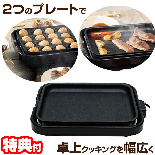 《クーポン配布中》2WAY クッキングプレート HT-551 電気 ホットプレート たこ焼き機 キッチン家電 電気調理家電 調理器具 フッ素コーティング 電気タコ焼き機 電気プレート ワイド フラットプレート クッキングプレート 卓上調理 たこ焼き機2way 電気お好み
