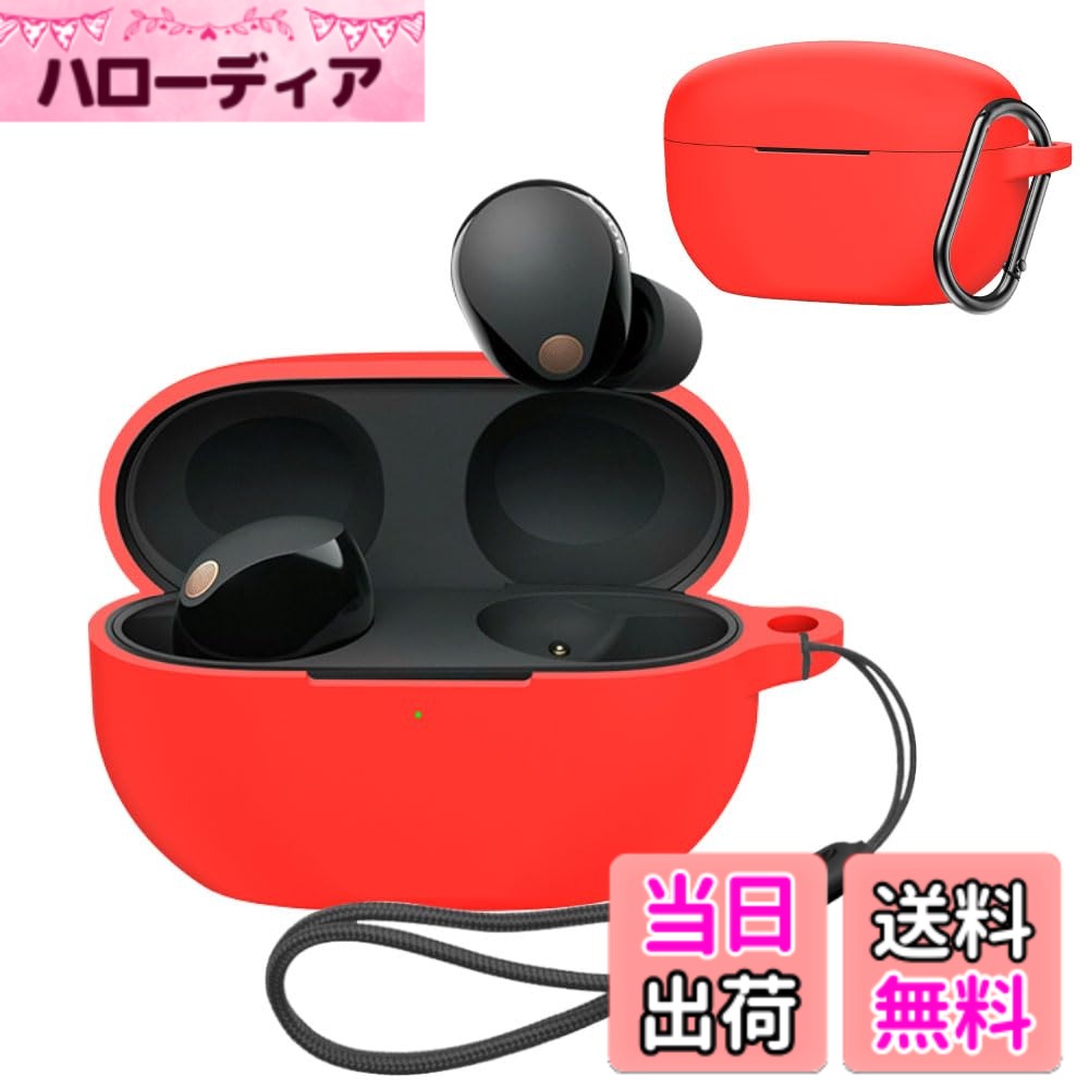 【送料無料】For ソニー SONY WF-1000XM5 用 ケース【YCJDP】フック&ループ付き 可愛い 萌え 防水防塵 軽量 着装まま充電可能 耐衝撃性 無臭で ソフト WF-1000XM5 用 シリコン 保護カバー 色:レッド、サイズ:sony-1000XM5