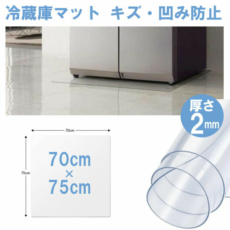 冷蔵庫 マット 透明 キズ 防止 Lサイズ 70×75cm 防水マット PVC製 床保護 下敷き 冷蔵庫マット デスクマット キズ防止 凹み防止 滑り止め チェアマット 透明 KAN000481