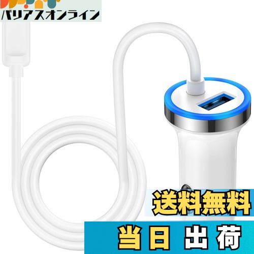 【送料無料】シガーソケット USB カーチャージャー 車 iPhone 充電器 色:ホワイト 車載