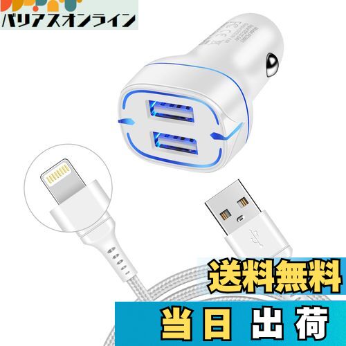商品情報商品の説明主な仕様 【高級なデザイン・同時充電】アップグレードのシガーソケット usb充電器は4.8AのUSB-A 2ポート搭載で、2台のデバイスを同時に高速充電できます。デュアルUSB カーチャージャーは、複数の安全認証に合格しており、傷がつきにくい亜合金なデザインで、車内のインテリアにも合うように仕上げました。デバイスを安全に保つために過電流および過充電などの多重保護を備えています。これはプラスチック製のものより安全です。【超小型と超軽量&LEDライト】弊社のiPhone 車載充電器はサイズ:61 x 31 x 24 mm。たった20gで、コンパクトなデザインはどこにでも気軽に持ち運べます。ミニサイズのカーチャージャー、運転の邪魔にならない。 また、このシガーソケットは通電時LEDライトが光り、夜間の暗い車内でもUSBポートが一目で確認できます。( ※※車種が異なるため、購入前に車のシガーソケットの深さをご確認ください。万が一、緩みや不一致があった場合は、交換またはいたしますのでご連絡ください。)【安定な充電&多重保護システム】車のシガーソケットにぴったりと収まり、車内が激しく揺れても、安定した充電が可能で、断線しにくい。そのミニサイズのために引き抜くのが難しいという問題を解決します。洗練された回路デザインで、過電流、過熱、過電力、過電圧、短絡を防ぎ、安心にご使用いただけます。【優れたLightningケーブル付き】シガーソケット USB 急速充電器セットのiPhone充電ケーブルは内部に高品質の銅線を採用し、最大24Wのスピードで充電が可能で、効率的に充電時間を節約します。480Mbpsのハイスピードでデータ転送ができ、データ転送の安定性も確保できます。1.8mのLightningケーブルはカーチャージャーと一緒に使用すると、さまざまなニーズにお応えします。【ユニバーサル互換性】この車載充電器はiPhoneおよびAndroidモバイルデバイスと互換性のあるユニバーサルデュアルUSBカーチャージャーです。カーチャージャーアダプターは、デバイスがサポートする最大充電速度でモバイルデバイスを充電します。(※注意:このカーチャージャーはバイクを対応できず、12-24Vの車を適用しかありません。)