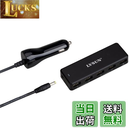 【送料無料】LVSUN 車載充電器 シガーソケットカーチャージャー 36W 7.2A 5ポート USB ACアダプター iPhone iPad Android Xperia Galaxy スマートフォン タブレット等に対応 ブラック