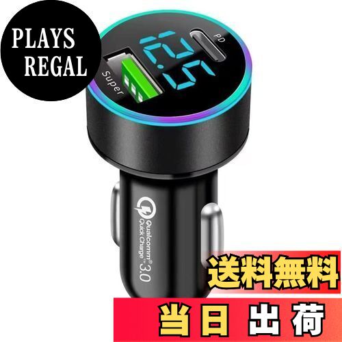 【送料無料】【2024強化版】車載充電器 ELYBYYLE for 車の電圧測定 USB 急速充電 USB C & USB A ポート PD 36W+QC 電流自動識別 4.8A電流 急速充電 LEDデジタルディスプレー搭載 USBカーチャージャー 電圧測定12〜24V車対応 【 iPhone & android & IQOS 対応】 ブラック