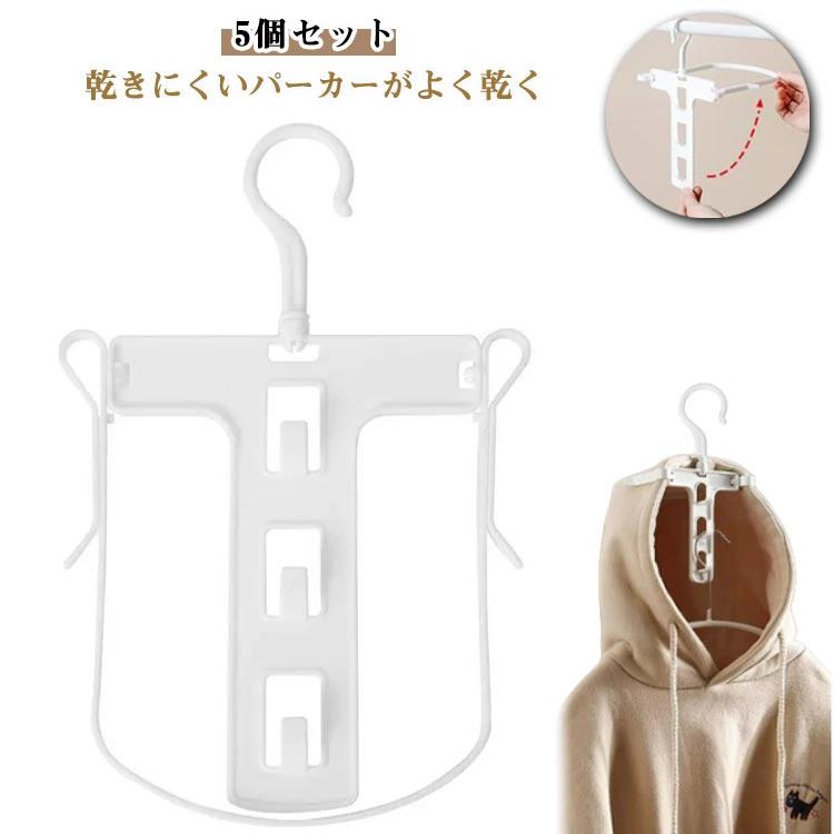 パーカーハンガー 物干しハンガー ハンガー フード 干し 洗濯 フード付きの洋服に 折りたたみ コンパクト 洗濯ハンガー よく乾くフードハンガー 5個セット パーカー用 乾燥時間短縮