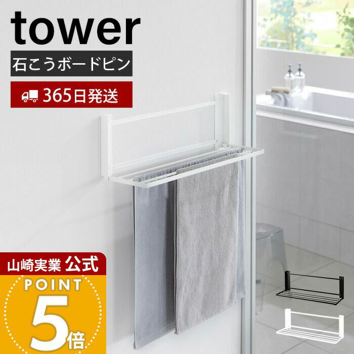 【365日出荷】山崎実業 ウォール折り畳みバスタオルラック 石こうボード壁対応 タワー tower 公式 折りたたみ 一時置き 洗濯物 着替え 室内干し ランドリー収納 壁面収納 ホワイト ブラック 1941 1942