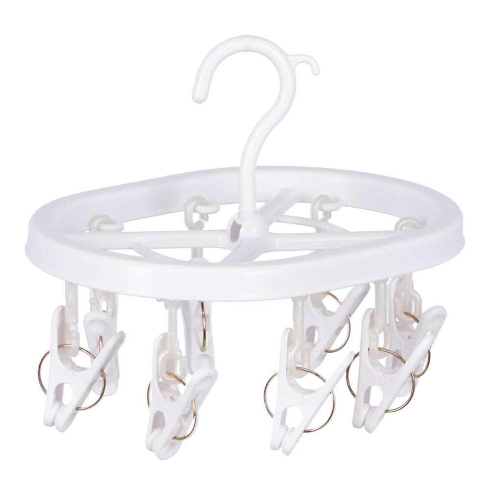 【特長】●フックは折りたたみ式になっていますので、コンパクトに収納でき、旅行などにも便利です。●破損したり紛失したピンチは市販のものと簡単に取り替えができます。【仕様】●材質:本体/ポリプロピレン バネ/スチール【注意事項】※火器や熱源、洗濯乾燥機などのそばに置くと、軟化して変形することがあります。
